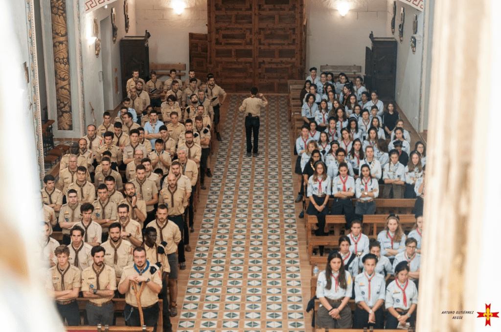 El domingo por la mañana desayunamos y recogimos todo el material. Seguidamente participamos en una Misa Solemne acompañada en su inicio y en su cierre por una magnífica pasarela de Baussants, pertenecientes a cada uno de los equipos. Fue algo muy impactante y bello. Seguidamente realizamos una gran formación con todos los asistentes a la ruta. Al acabar tuvimos la votación en Asamblea Nacional. En ella votamos al actual Consiliario Religioso de la Asociación, el Padre Abraham.