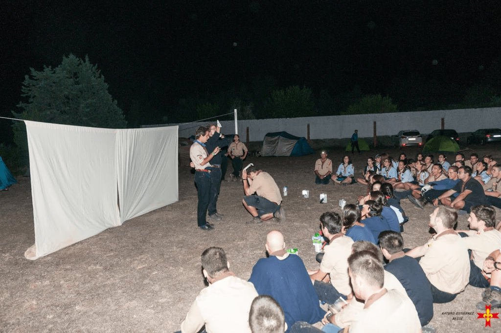 Seguidamente algunas de nosotras tuvimos el Consejo de jefes y jefas de Equipo: hablamos de diferentes aspectos de la ruta, dudas y horarios del día siguiente, entre otras muchas. Al finalizar, volvimos cerca de nuestras tiendas donde nos dispusimos a cenar. Allí acompañamos la comida con narraciones y “batallitas” sobre la jornada acompañadas del equipo piloto de guías. ¡Ellas también pasaron grandes momentos juntas! Después de la cena nos preparamos para ir a la velada festiva que algunos equipos nos habían preparado. ¡Cómo nos reímos! En ella aprendimos de una forma amena y divertida la historia de nuestra fundación como Asociación de Escultismo Europeo (F.S.E.). No nos podemos olvidar de los alegres cantos que la acompañaron, algunos de ellos previamente ensayados durante esa misma mañana. Antes de ir a dormir tuvimos la vela al Santísimo un momento muy importante para nosotras y sobre todo para dar gracias y pedir por este inicio de curso.