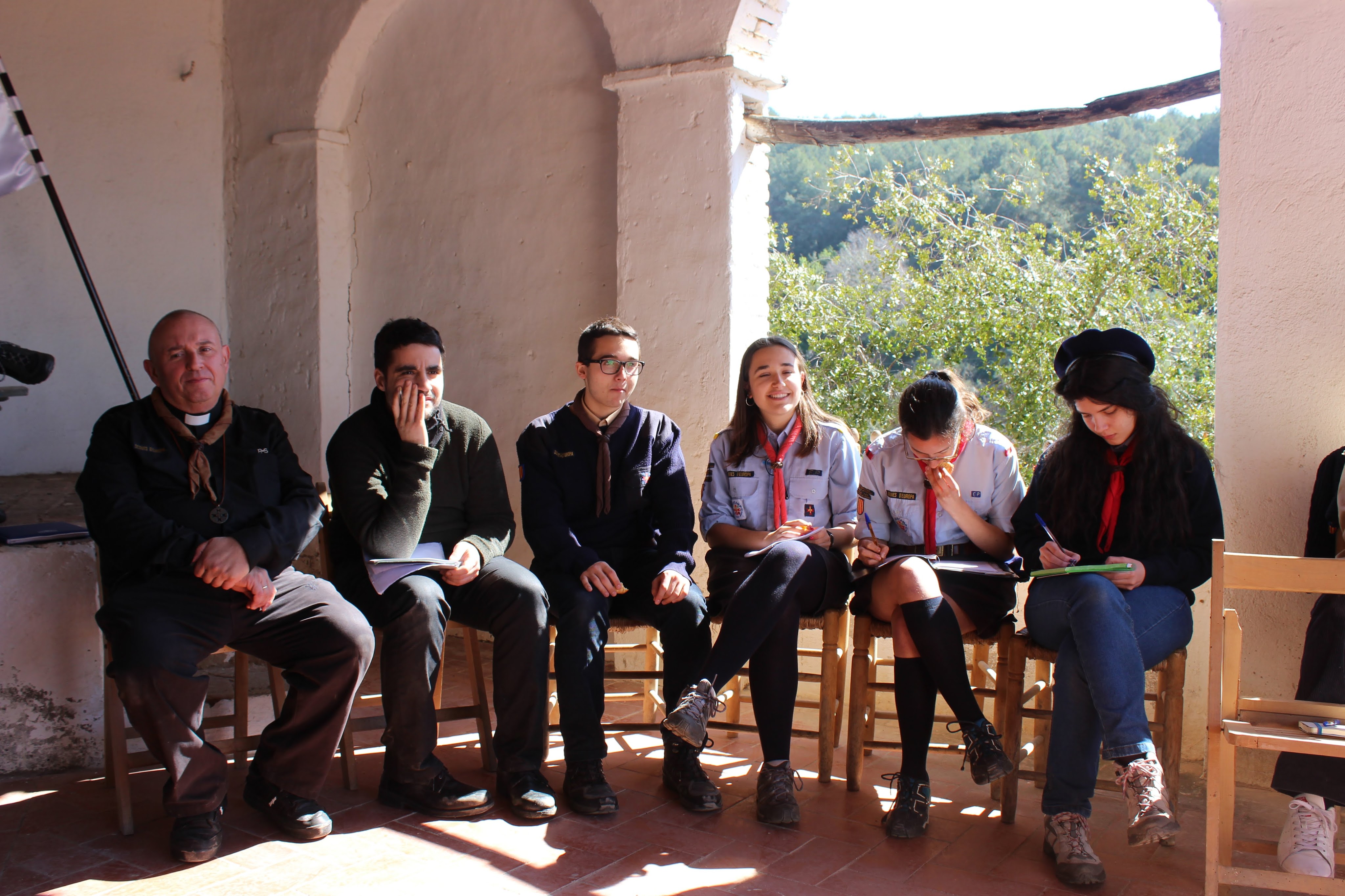 cuinat ens mobilitzen a tots a seure, ja que ha arribat l’hora de dinar. Sempre aquest és un bon moment per posar-nos al dia amb els nostres germans scouts i guies, i parlem de la universitat, debatem sobre temes d’actualitat, expliquem alguna anècdota que haguem viscut amb les nostres unitats, etc. En un moment donat, es fa el silenci i tots escoltem amb atenció una vivència del Marcelino al seu voluntariat a Burkina Faso. No va haver ningú que no es quedés bocabadat amb aquesta experiència realment impactant, que també ens va fer reflexionar sobre aspectes de lideratge. Ja havent pres el cafè després dels postres, no hi ha temps per perdre, ja que el següent mòdul ens espera.