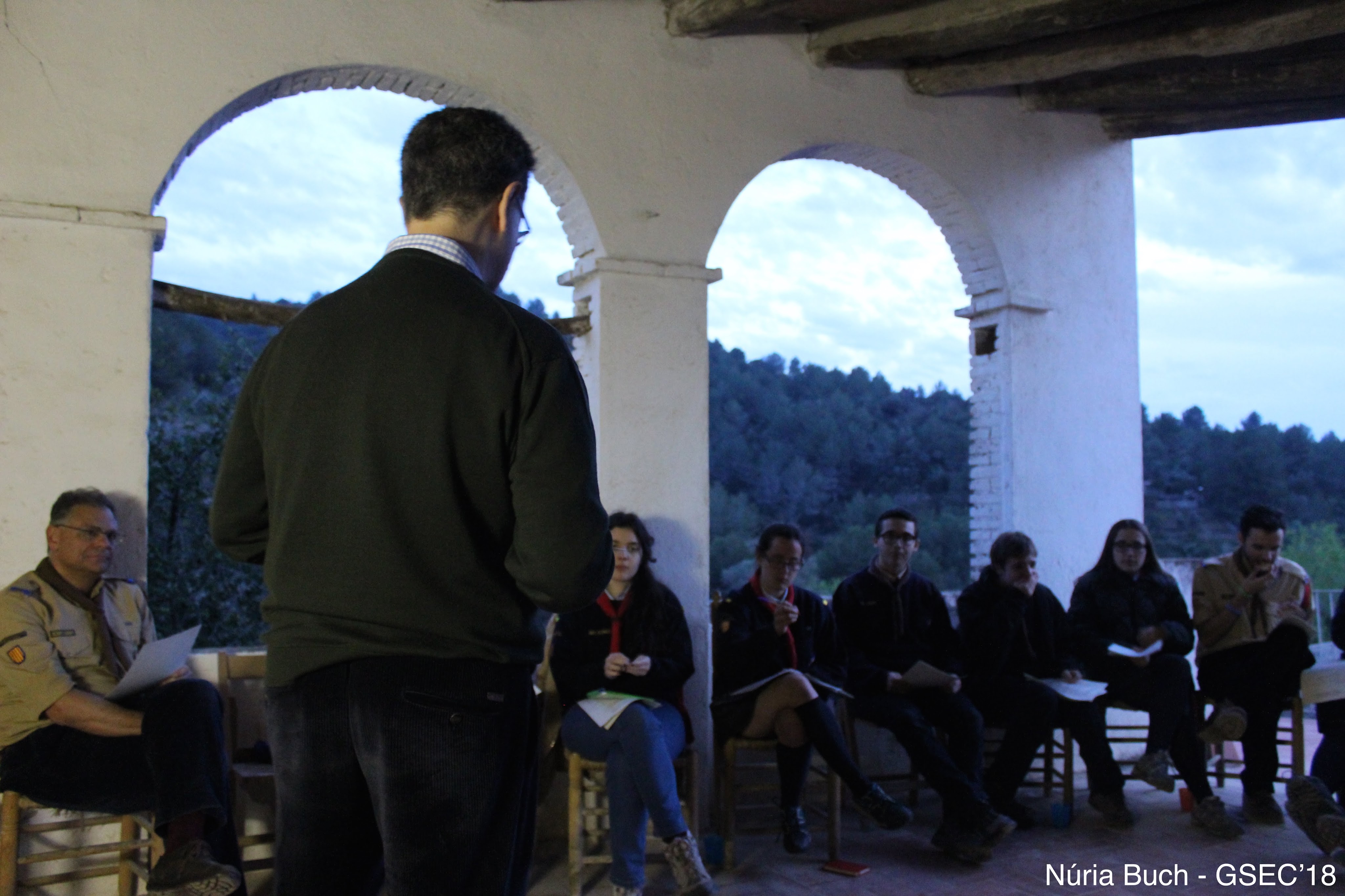 És dissabte al matí, i diversos cotxes de diferents parts de Catalunya es dirigeixen cap a els afores de Sant Feliu de Llobregat, a una masia al mig de la muntanya, lloc perfecte per viure el nostre ideal scout: un indret amb vegetació molt diversa, bosc i, sobretot, molta tranquil·litat. Els més puntuals preparen la taula per l’esmorzar i ho deixen tot a punt pels que porten la intendència, ja que els budells es comencen a despertar. En aquells moments, mentre fem petar la xerrada, arriba el que serà el nostre referent en lideratge en les properes hores: el professor Marcelino Gil. Sense saber-ho ens sorprèn a molts per la seva manera de ser tant propera. I del que tampoc som conscients d’aquesta primera impressió es que, després d’estar unes hores amb ell, la nostra manera de portar un equip canviaria per complet.