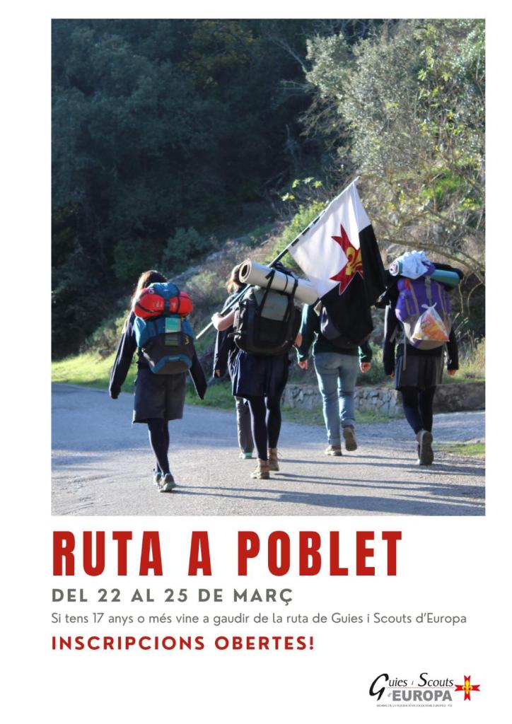 Guies i Scouts d’Europa a Catalunya prepara un any més la seva tradicional ruta catalana al Monestir de Poblet, que ja arriba a la seva setena edició. Es tracta d’una activitat dirigida a joves de 17 anys o més que busca aprofundir en l’espiritualitat catòlica a través del mètode scout i el contacte amb la natura.