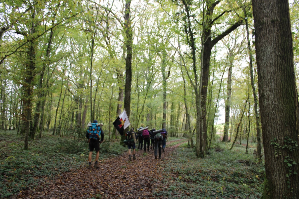 El primer dia ens vam desviar de la ruta establerta i vam caminar 19km en una tarda, abandonant el capítol dels scouts del sud de França (Rosselló, Occitània, Aquitània i Provença) per unir-nos al capítol dels bretons, els normands i els espanyols. No ens vam aturar ni per fer l’hora ruta, un moment de silenci i oració personal. Quan encara quedava un terç del camí, es va fer fosc i ens vam quedar sense aigua. A un poblet amb quatre carrers, vam trucar a la porta de l’única casa d’on sortia llum.