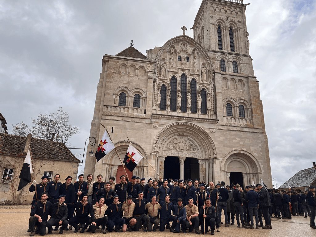 Un dels moments més emotius va ser l’arribada solemne a la basílica de Vézelay, amb els scouts entrant en processó, bastó en mà i entonant els cants tradicionals de la branca vermella.