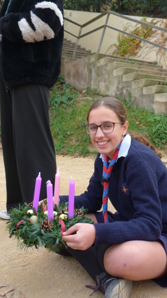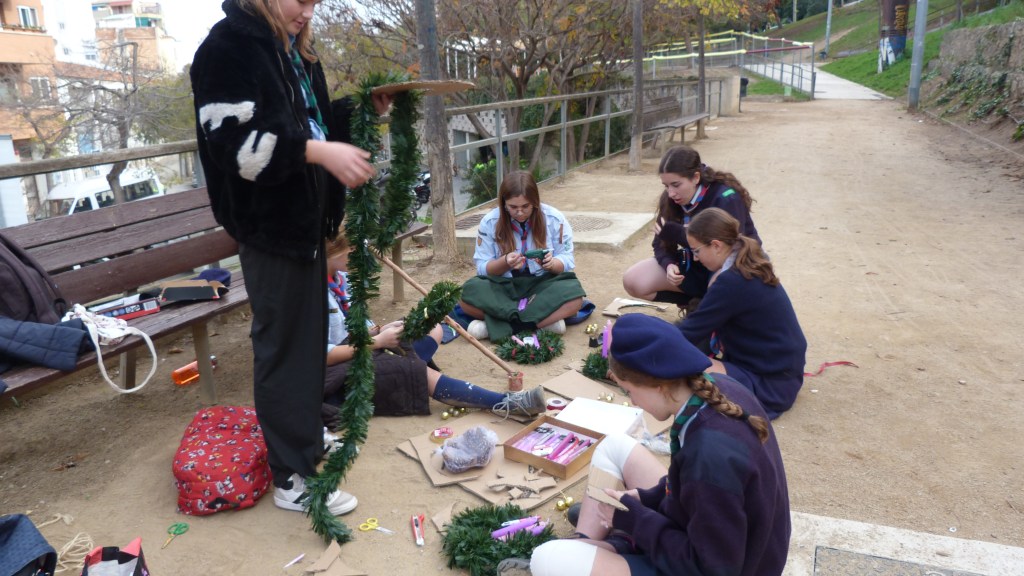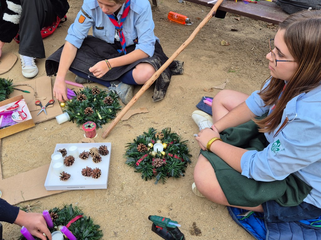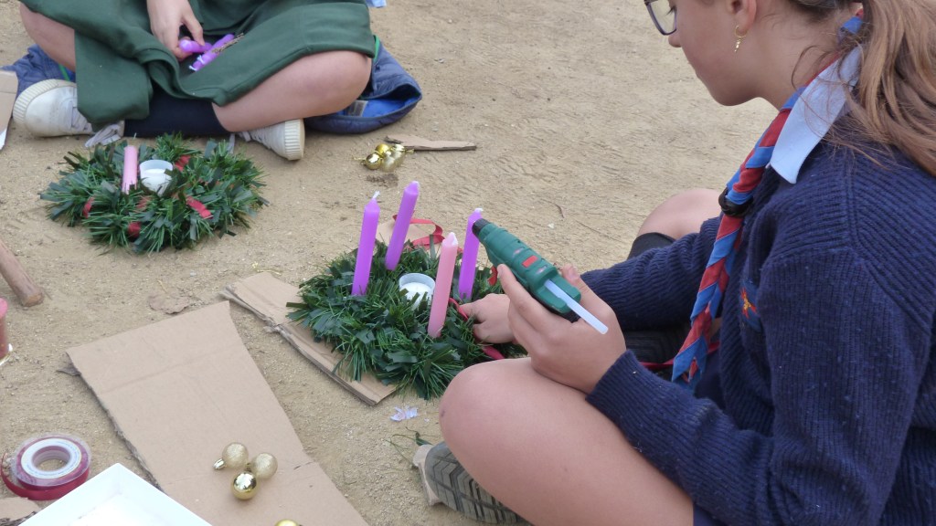 Después de la misa, nos dirigimos al Parque de la Primavera, donde llevamos a cabo una actividad muy especial: la elaboración de nuestra propia corona de Adviento. Entre ramas, lazos, velas y mucha creatividad, cada patrulla trabajó en equipo para construir una corona que simbolizara la espera y la preparación para la Navidad. El parque se llenó de risas y manos ocupadas.