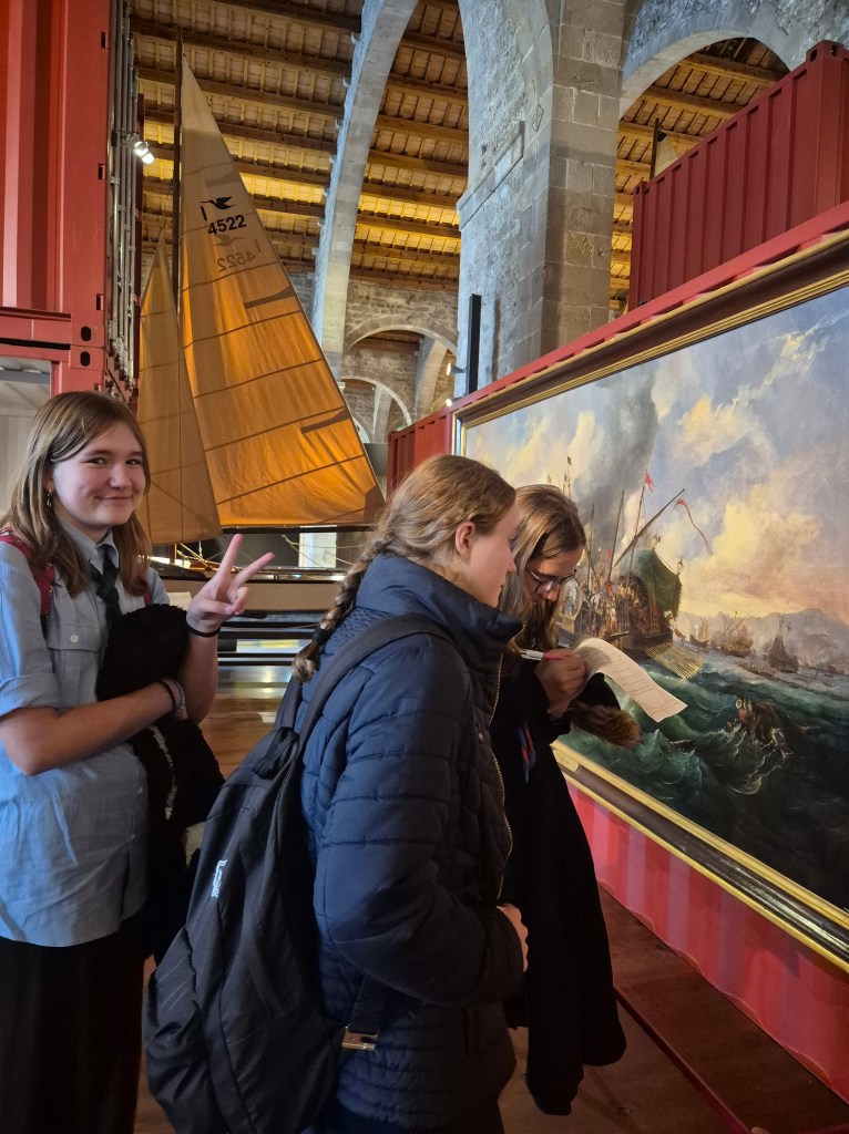 Al llegar al museo, nos esperaba una gincana con preguntas relacionadas con la historia naval. Las patrullas nos movimos entre exposiciones, mapas y objetos históricos, poniendo a prueba nuestros conocimientos, capacidad de observación y espíritu de equipo.