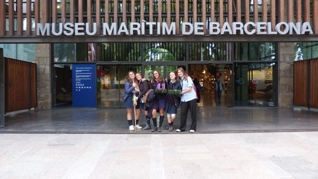 Con fuerzas renovadas, iniciamos una marcha hacia el Museo Marítimo de Barcelona. Caminamos en grupo, disfrutando del trayecto y de las vistas, preparándonos para una tarde llena de descubrimientos.